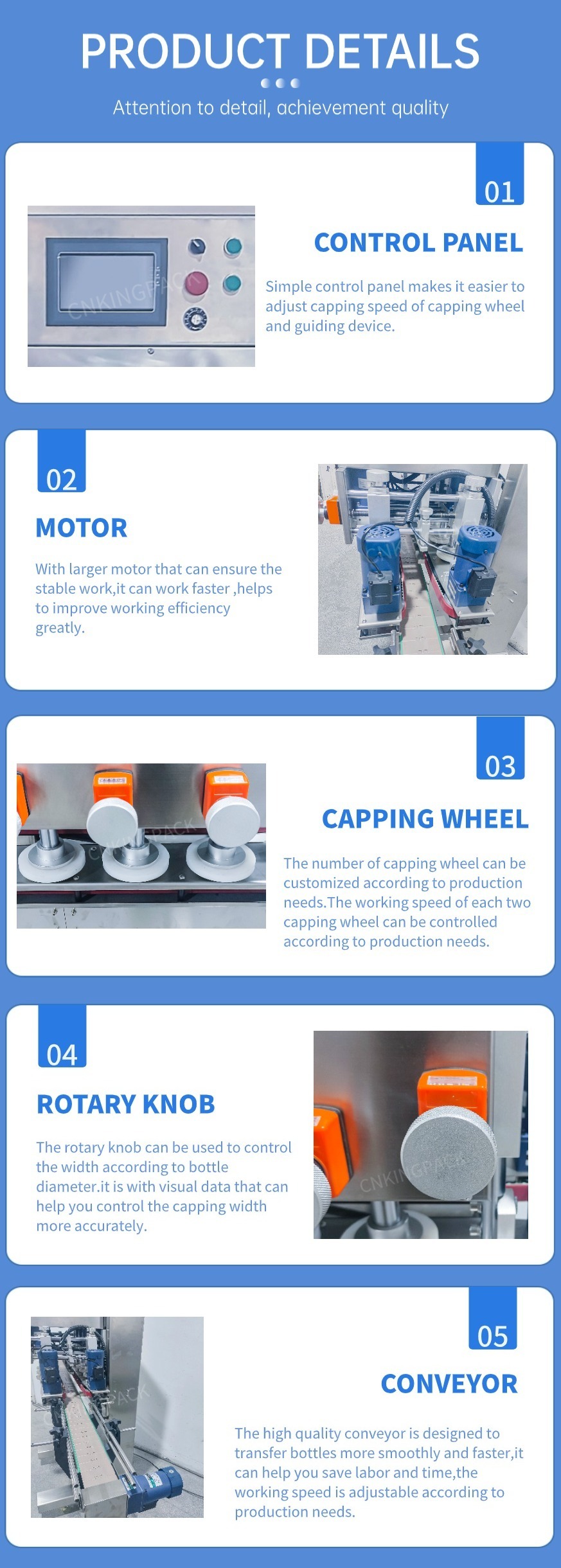 Capping for plastic cap of various bottles, jars, atomizer bottle, etc.Widely used in cosmetic, drinks, chemical, medical, food industry etc, which can highly improve productivity and product quality.