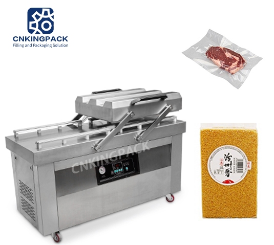 Automatic double vacuum packing machine is one kind of the most efficient vacuum packing machines in company since the double chamber could work by turns with quality vacuum pump, the machine provide you advantage for users to place packaging bags to one chamber while another chamber is working for packing.