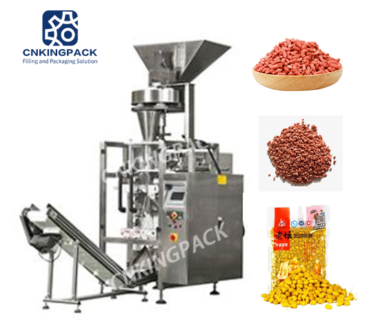 Машина для упаковки корма для животных в гранулы используется для производства закусок, оборудования, соли, глутамата натрия, куриной эссенции, семян, риса, пестицидов, риса-удобрения, ветеринарной медицины, кормовых премиксов, добавок и других гранулированных количественных упаковочных материалов.