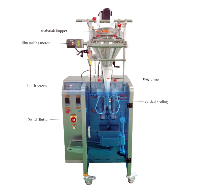 This machine is suitable for packing various powder, such as coffee powder, cocoa powder, milk tea powder, milk powder, medicinal powder, solid beverages, etc.