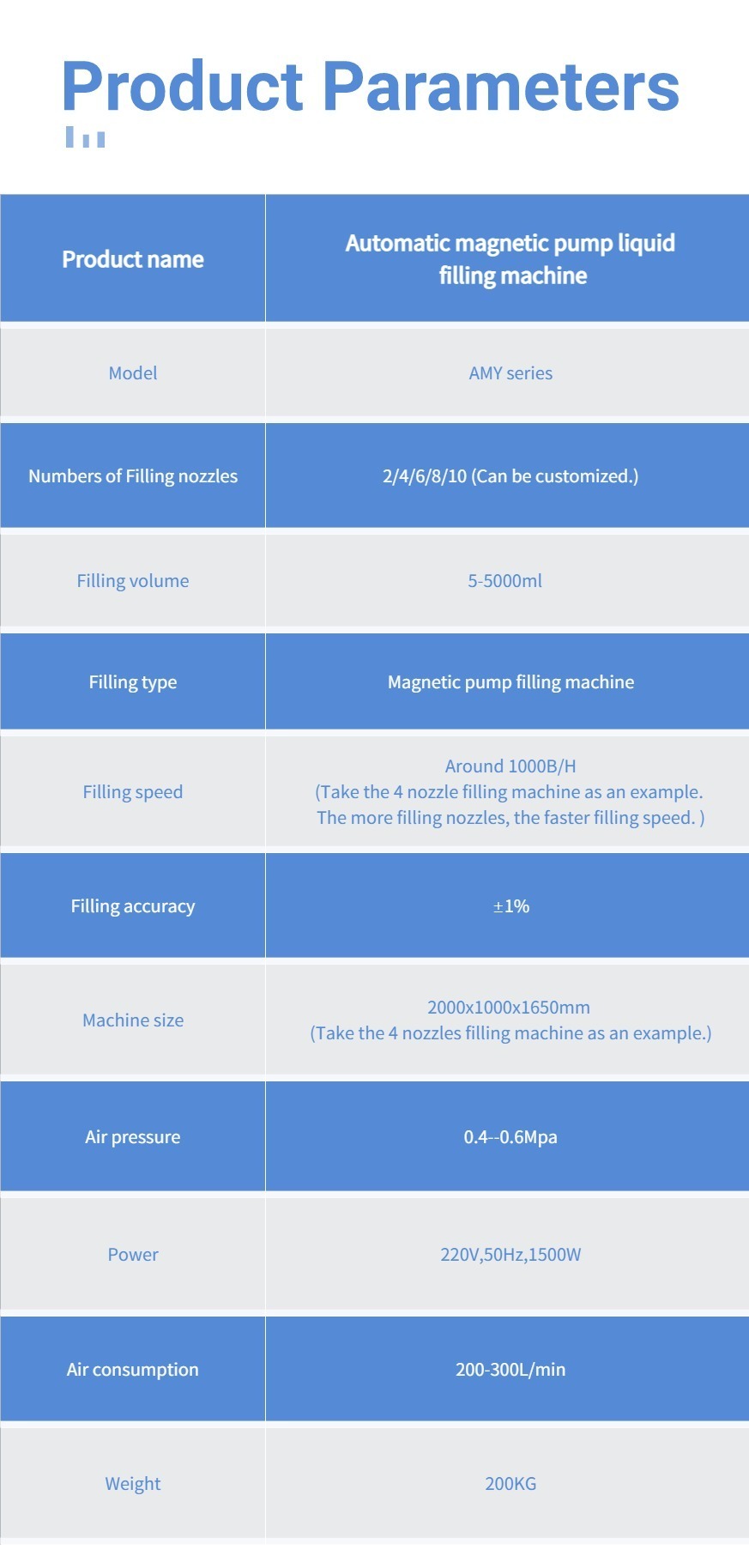 | Numbers of Filling nozzles | 2/4/6/8/10 (Can be customized.) |