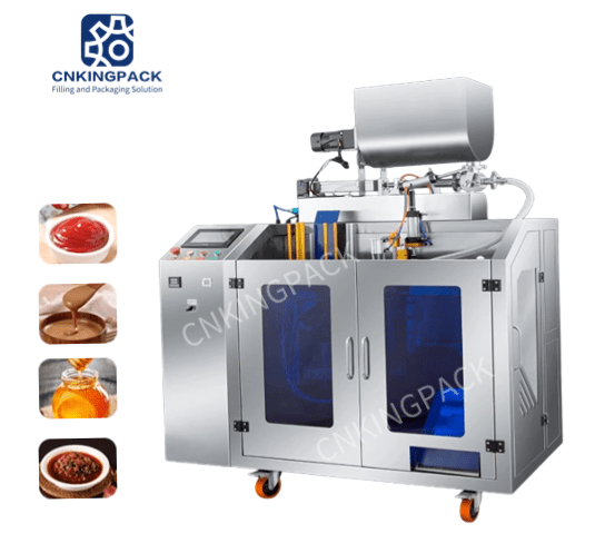Fully automatic horizonal premade bag packing machine is suitable for liquid material packaging in food, medicine, daily necessities, agriculture and other industries, such as ketchup, tartar sauce, pasta sauce, mayonnaise, honey, soy sauce, broth, milk, juice, sports drinks, Body wash, shampoo, laundry detergent, etc.