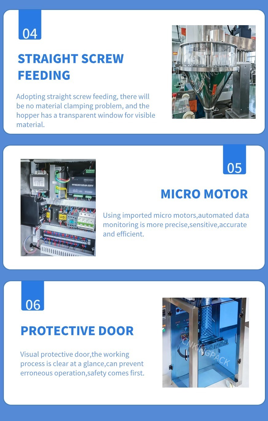 Suitable for packing milk powder, milk tea powder, protein powder, grain powder, nutrition powder, soy milk powder, condiment, spices, herbal powder , medical powder , chilli powder ,coffee powder, curry powder, corn starch, stevia powder, cocoa powder, flour, starch, chemical powder, amylum, etc.