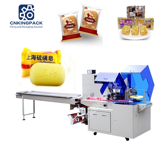 This Machine is suitable for packing regular objects, such as biscuits, fruits, candy, moon-cake, bread, bars, dessert, instant noodle, industrial parts, box, trays, face mask, etc