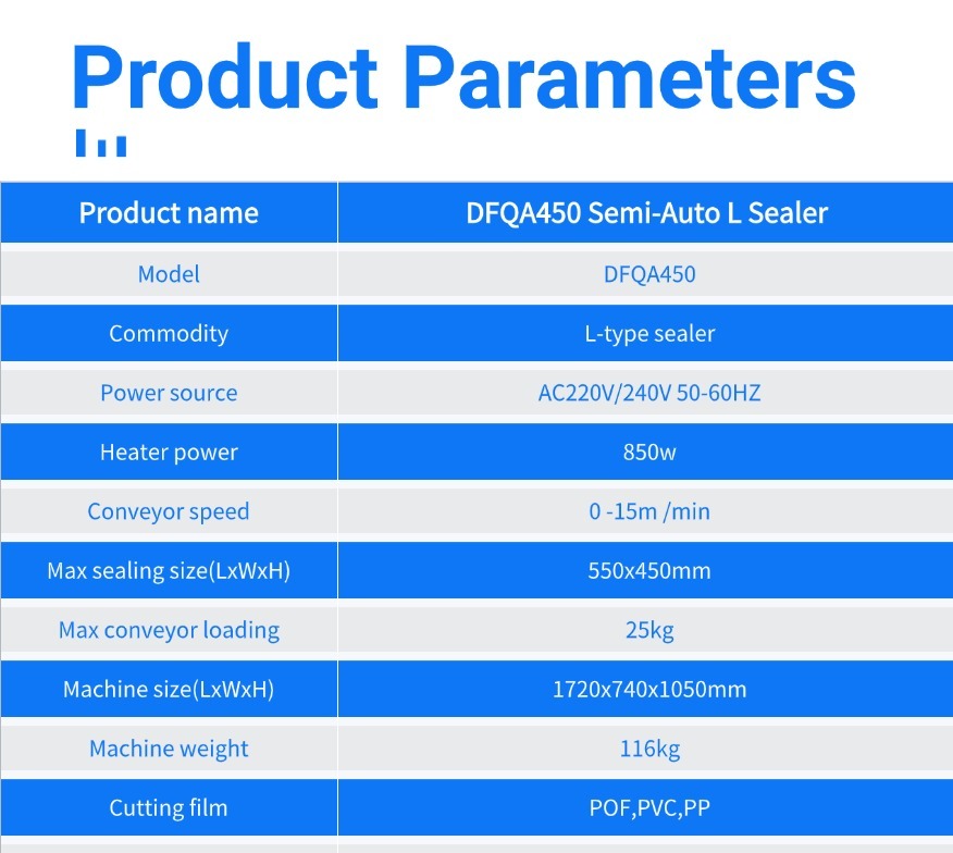 | Product name | DFQA450 Semi-Auto L Sealer |