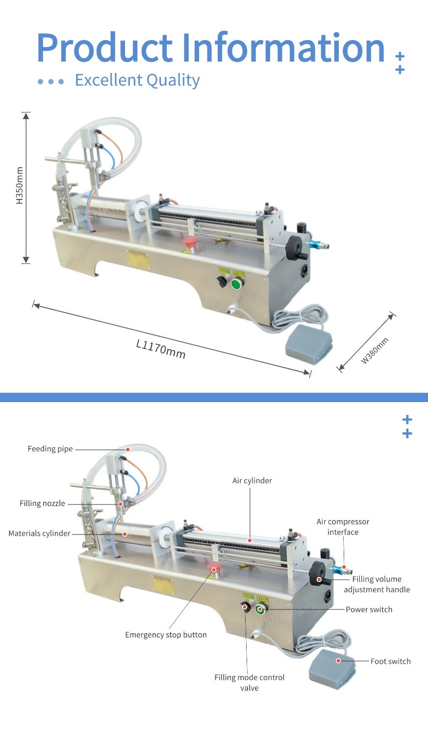 | Machine size | 1170x380x350mm (Take the 100-1000ml filling machine as an example.) |