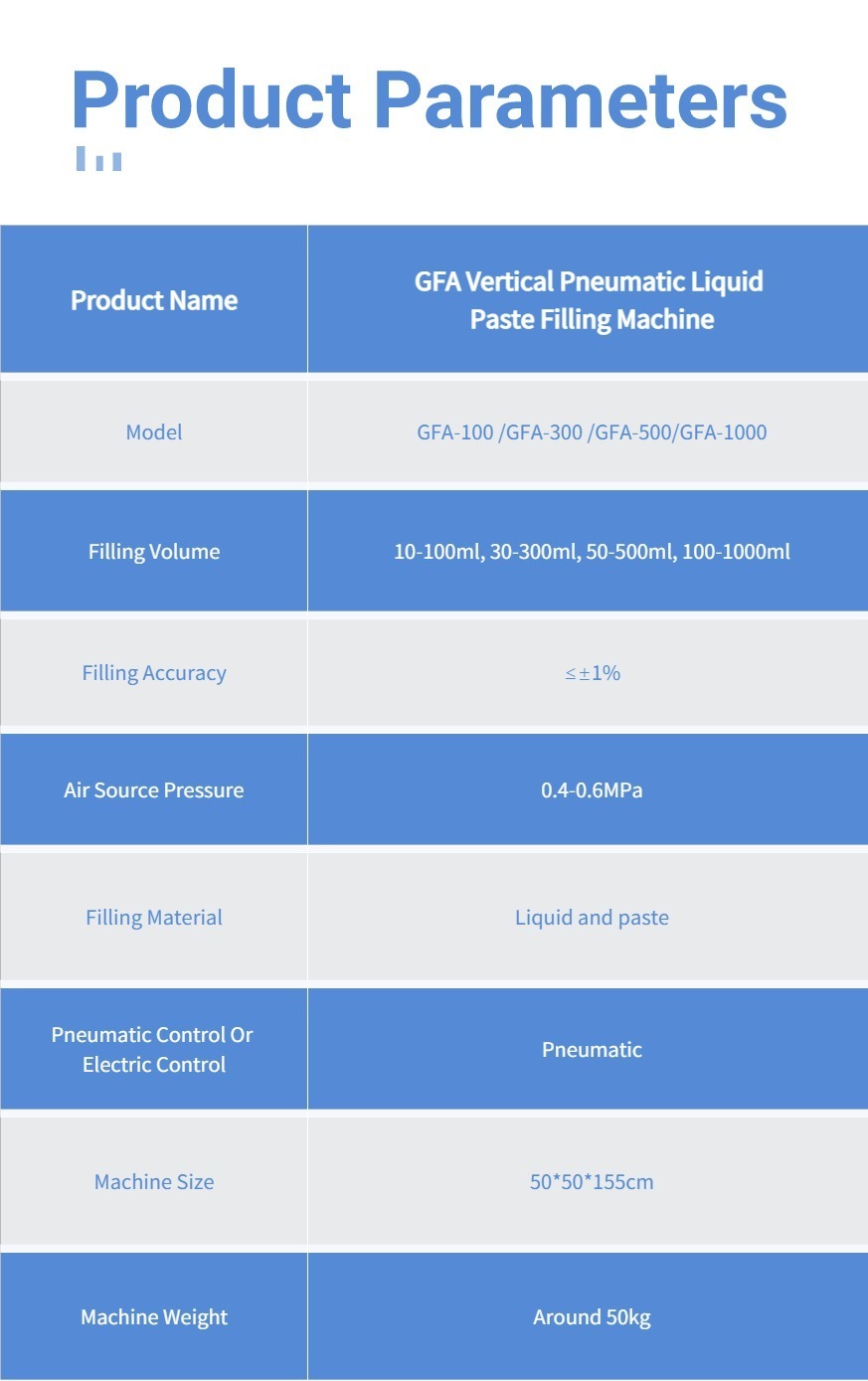 | Product Name | GFA Vertical Pneumatic Liquid Paste Filling Machine |