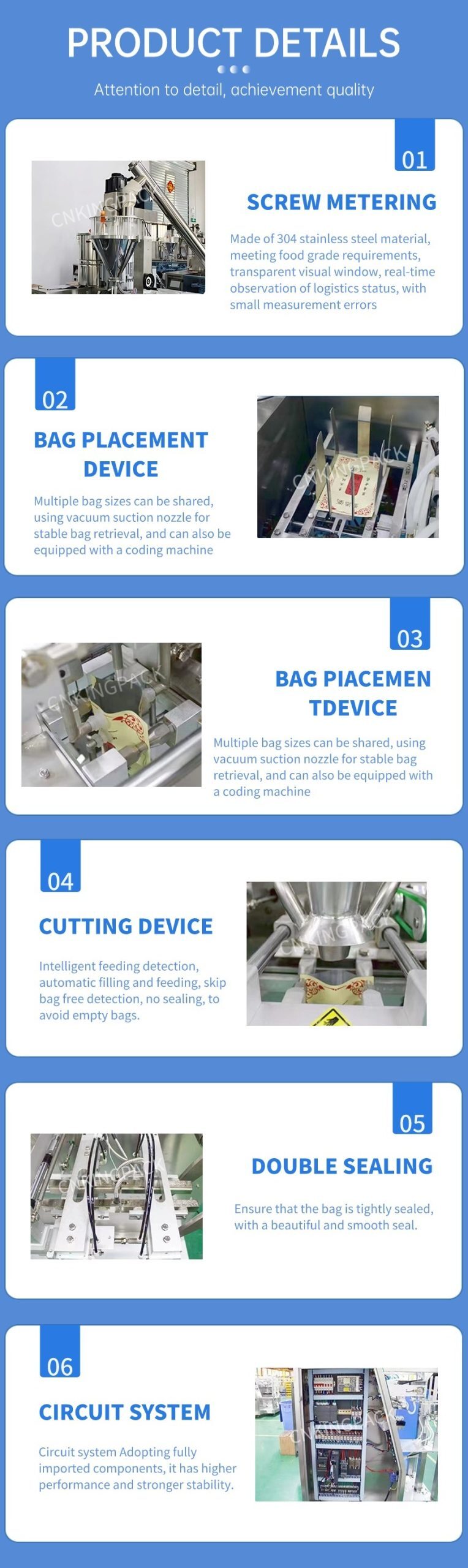 Suitable for packing milk powder, milk tea powder, protein powder, grain powder, nutrition powder, soy milk powder, condiment, spices, herbal powder , medical powder , chilli powder ,coffee powder, curry powder, corn starch, stevia powder, cocoa powder, flour, starch, chemical powder, amylum, etc.