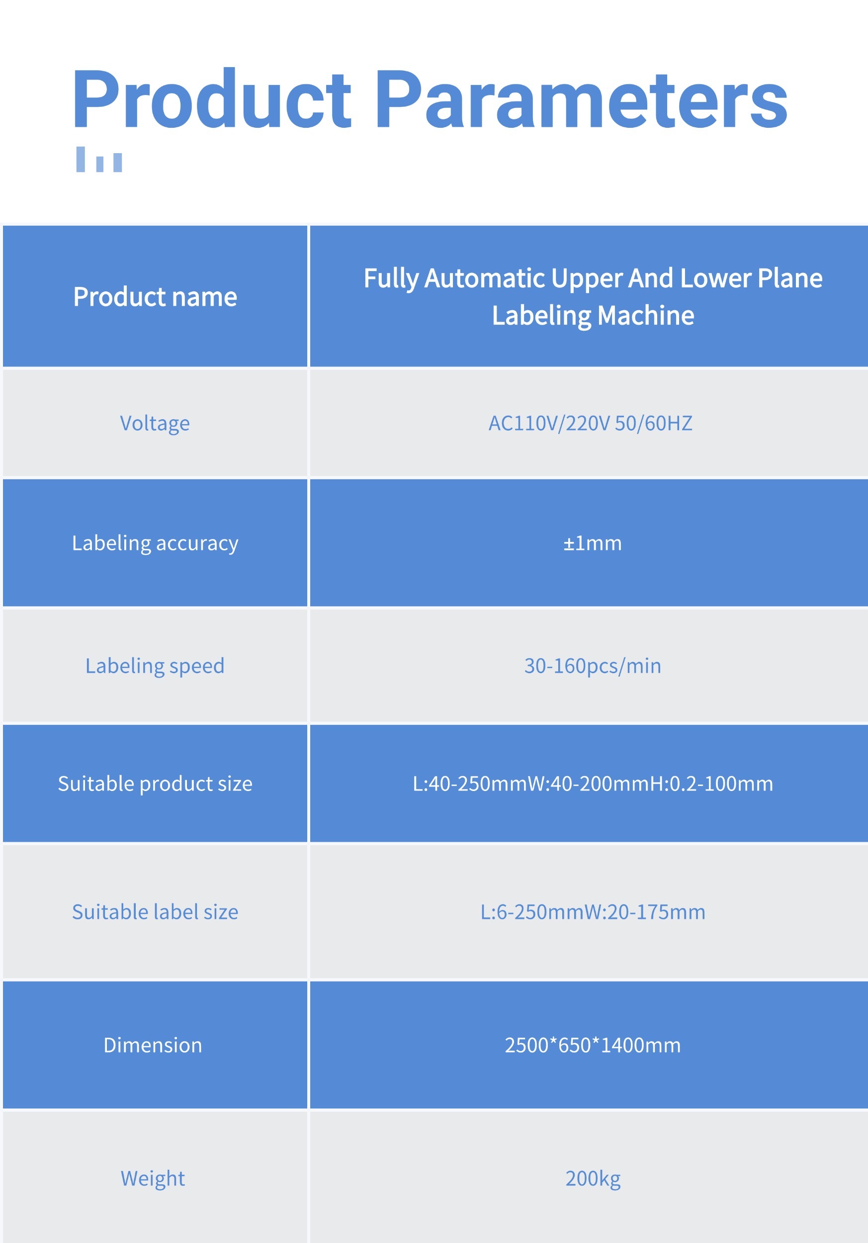 | Product name | Fully Automatic Upper And Lower Plane Labeling Machine |