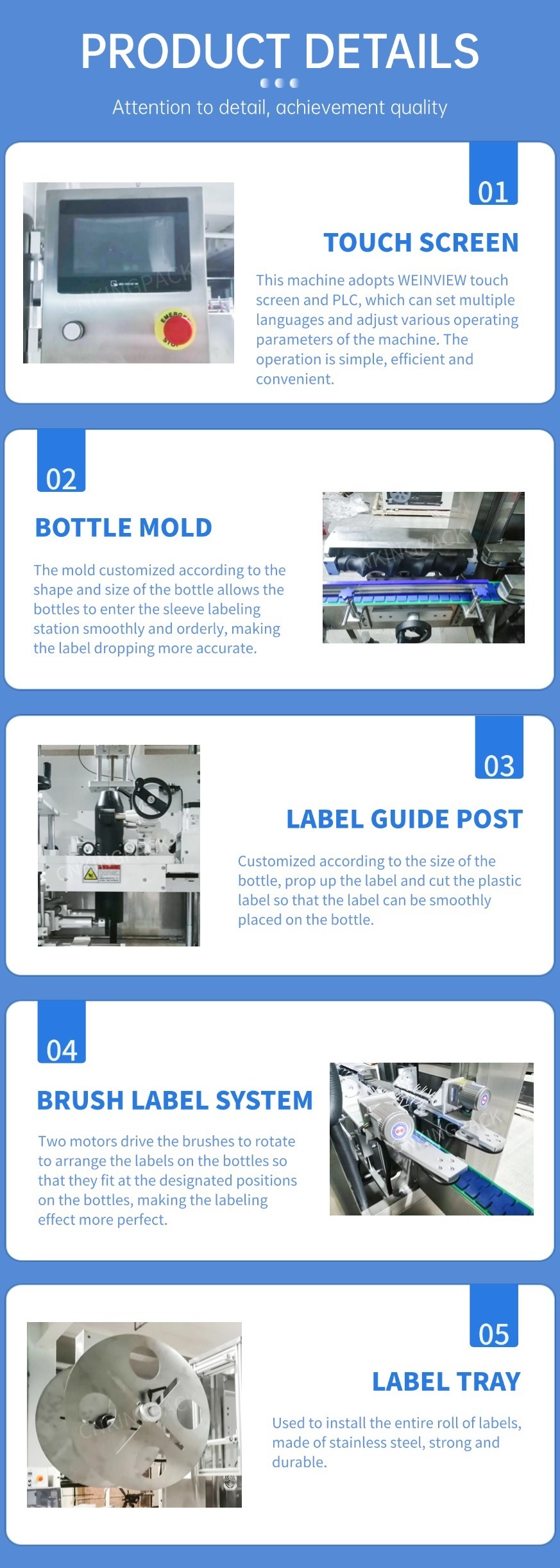This machine is widely used, suitable for food, beverage, cleaning products, medicine, wine bottles and other kinds of plastic bottles, glass bottles, PVC, PET, PS, tin cans and other containers.