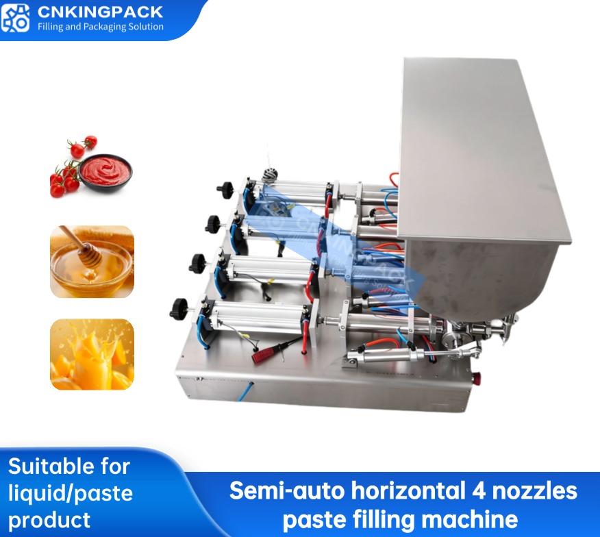 Semi-auto horizontal 4 nozzles paste filling machine