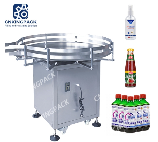 - It is suitable for automatic transmission of round bottles, square bottles, etc., such as the conveyor belt connected to the labeling machine, filling machine, and capping machine, automatic feeding, improving efficiency; it can be applied to the middle connection of the assembly line as a buffer platform, Reduce the length of the conveyor belt.