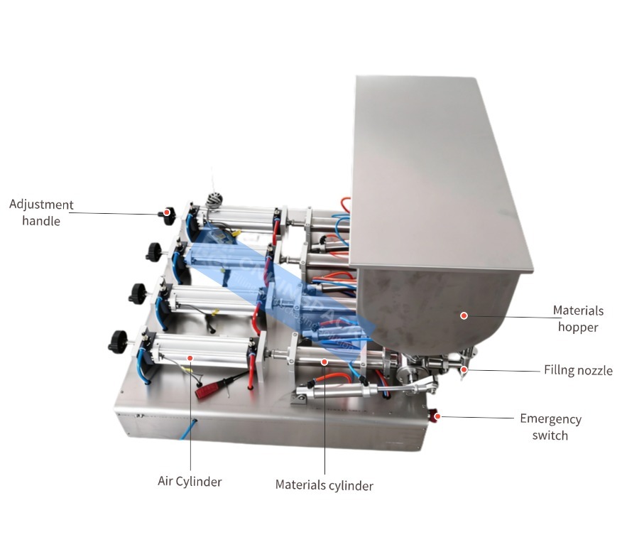 Semi-auto horizontal 4 nozzles paste filling machine