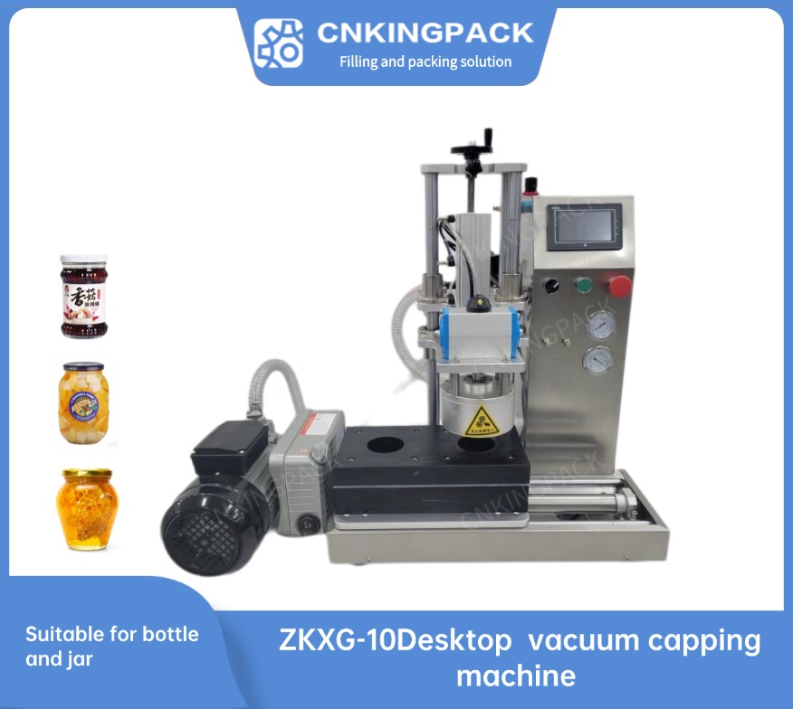 ZKXG-10Desktop vacuum twist-off capping machine is suitable for bottle and jar.It is equipped with a vacuum pump to remove the air from the containers while capping, which helps store the food longer with good food hygiene.